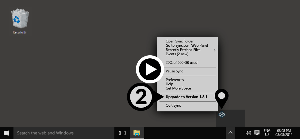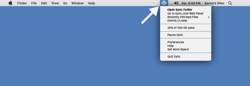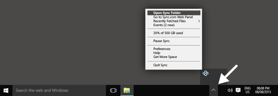 Once Sync is installed on your computer, you can access the Sync app by clicking the Sync icon on Windows system tray or Mac menu bar.
