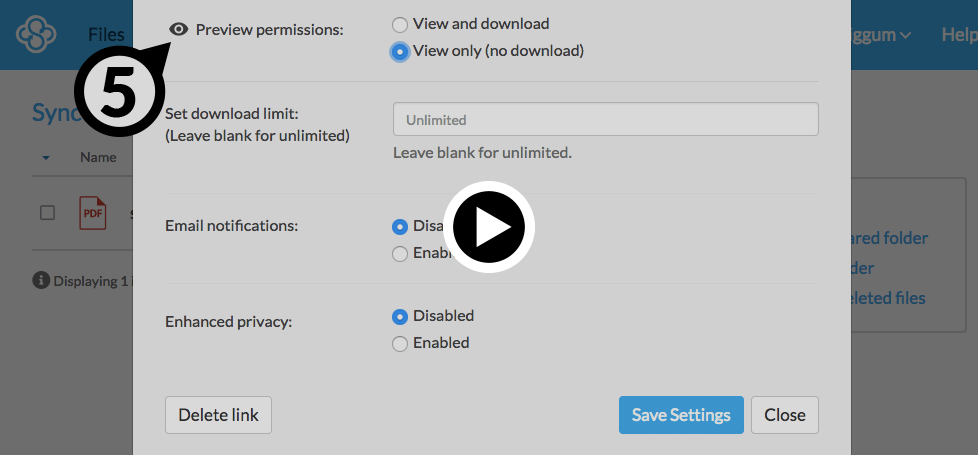 Sync Pro and Business customers can disable downloads on shared links. If the file is previewable, recipients can view the linked document, but cannot physically download it to their computer or mobile device through Sync.