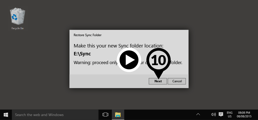 Once your Sync folder has been moved to the new computer you can proceed to install the Sync desktop app. The desktop app installer will prompt you to select the location of your Sync folder – choose the location of the Sync folder you just copied over.