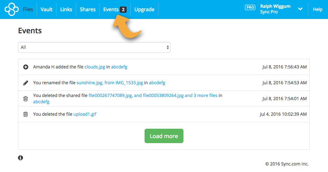 No more guessing. The events timeline gives you a clear, chronological view of every file, user, share and device action that’s ever happened in your Sync folder or Vault. From recent file updates to shared user activity, you’ve now got a real-time insights and data feed to keep your syncing in check and your consciousness enlightened.