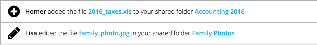 Every file, user, share and device action associated with your account is logged, and readily available when you need it. Each entry shows:
