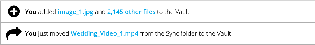 Yes, the events timeline is also wired into the Vault. You can now verify that files and folders you’ve moved or copied to the Vault are actually in the Vault, without manually checking. The absoluteness of this knowledge will make your brain tingle with delight.