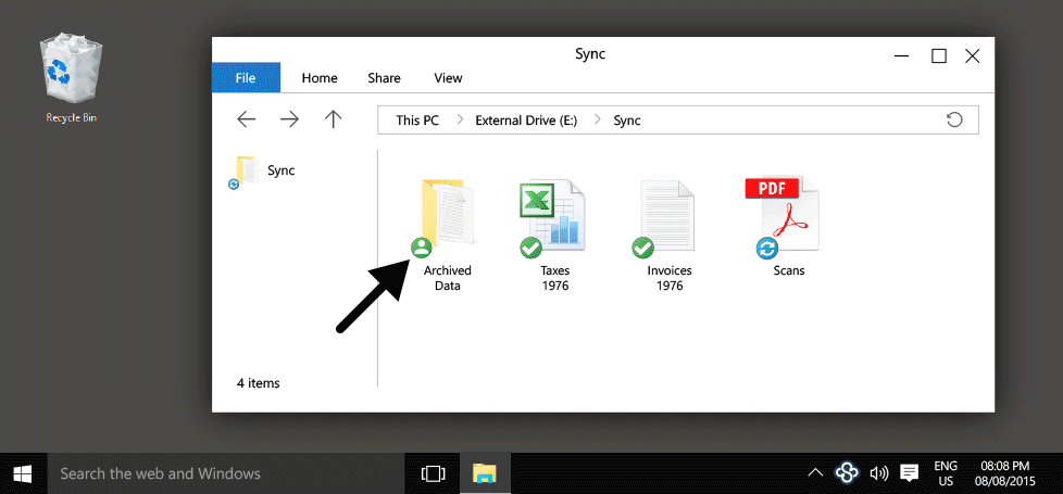 Overlay icons are displayed on all file and folders in your Sync folder.