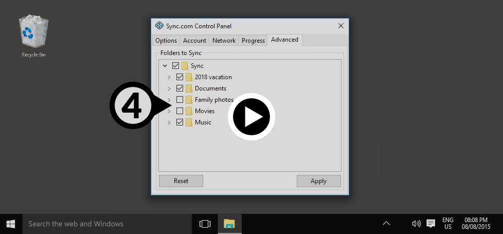 The Advanced tab allows you to control which folders get synced to each computer, a feature called selective sync. Selective sync is typically used if Sync is installed on multiple computers, and you want to control which folders (in your Sync folder) get synchronized to each computer.