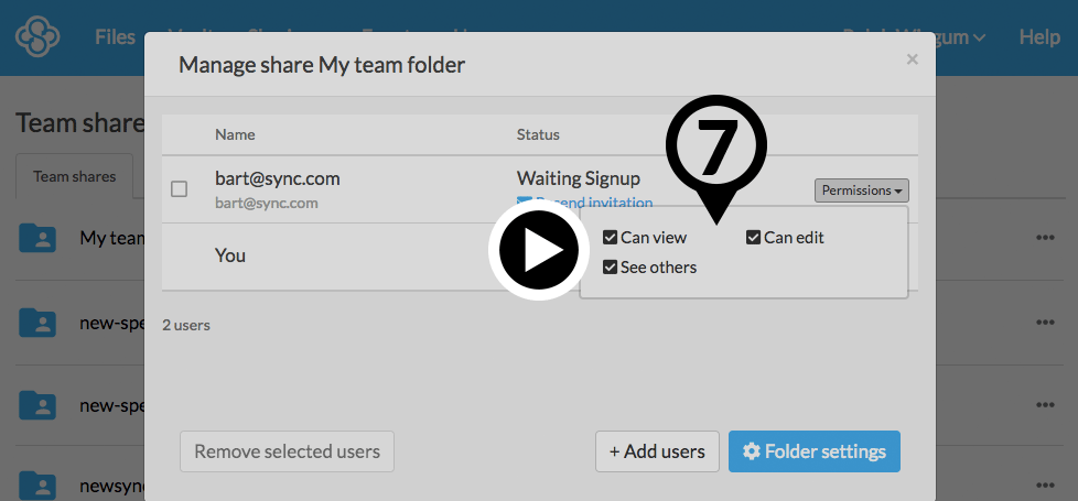 Sync Pro and Business customers can restrict editing with view-only permissions, and invite free Sync users to shared folders, regardless of folder size.