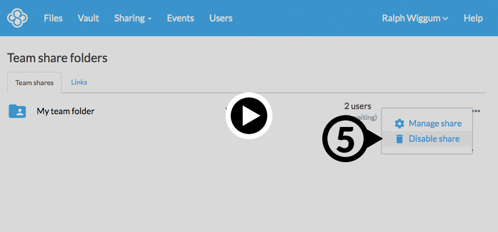 The remote wipe option: When removing users you have the option of letting the user keep a copy of the shared folder in their Sync account (they won’t be able to see future changes), or deleting the shared folder from their Sync account.