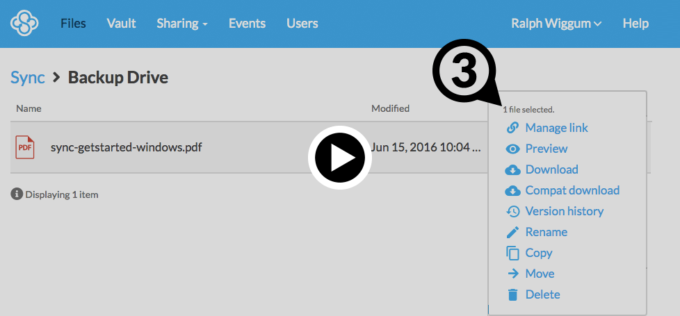 The Sync.com web panel includes file and folder tools to help you stay organized.
