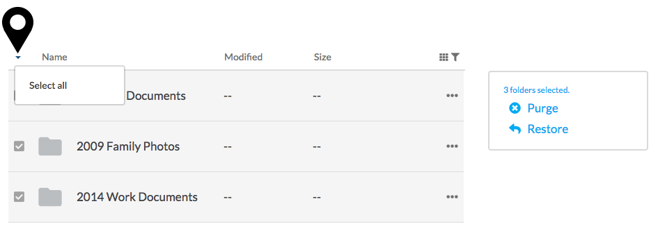 Follow the steps as outlined above, however on step three check multiple deleted files or folders, or click the down arrow to select all.