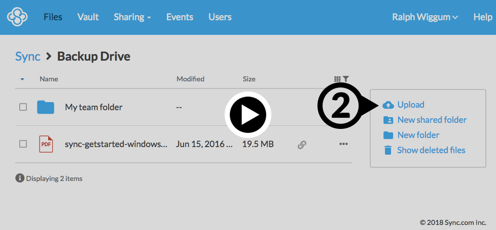 Note: to transfer large folders, uploading via the Sync desktop app is recommended.